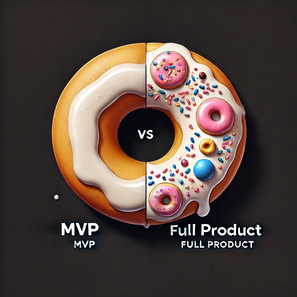 The cake on the left is an MVP. It is a complete and simple product that can be used “as is.” It can be enjoyed in its current state even without decorative elements like icing and sprinkles that could be added in future product iterations.