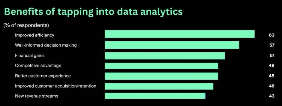 According to the BI & Analytics survey conducted by MicroStrategy in 2020, 63% of businesses splurge on data analytics tools to become more efficient, while 51% of the respondents seek to improve their financial performance.